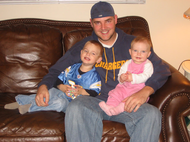 We have some die hard Charger fans in this family. They all looked so good in their Chargers gear, I'm sure that's why the Chargers won last night. Luke's saying, "smile" in the picture, he so funny!