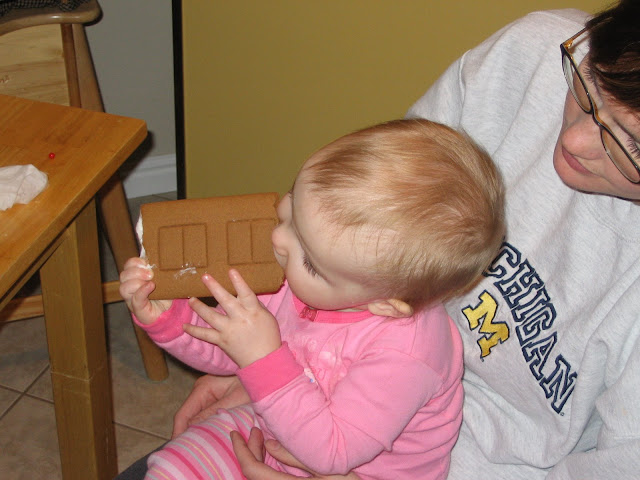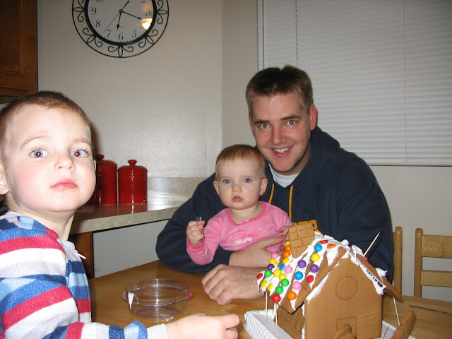 We finally got around to family night, Ben's had finals this week, so it's been hectic for him. I told Luke when Dad got home we could build a house. As soon as Ben walked in the door, Luke led him to the kitchen. Luke didn't know what the house building was all about, but he was sure excited about it. The house fell apart, but the kids loved it anyways.
