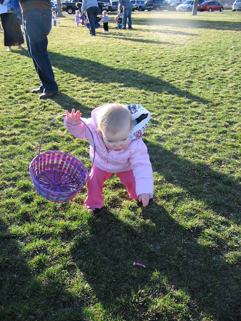 yikes, your kiddo is too cute looking for those eggs!!! (yet another thing I can't wait for Ava to do) Happy Easter!!!!