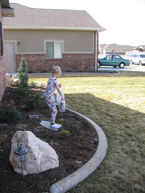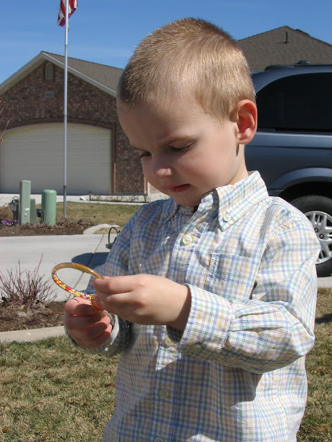 We had another Easter Egg hunt at Grandma and Grandpa Dawson's after church on Sunday. Abby got mad after just a few minutes, Luke got stuck on the first thing he found, he didn't want to get anymore... My nephew, Fisher, loved it, and my nephew, Dawson, was a pro. He got all his stuff the quickest. The kids had a great time! My favorite part was when Fisher said that Abby was a princess in her Easter dress. It seems that from when you're a little kid to when you are an adult, holidays some how lose a bit of magic... Then you have your own kids, and they get better each year. It's so fun to watch the kids go crazy and enjoy all the fun.
