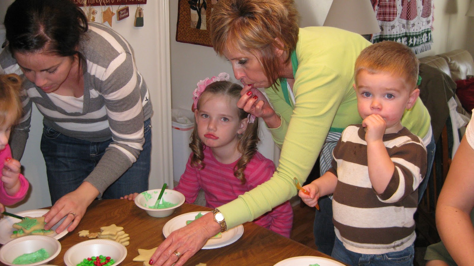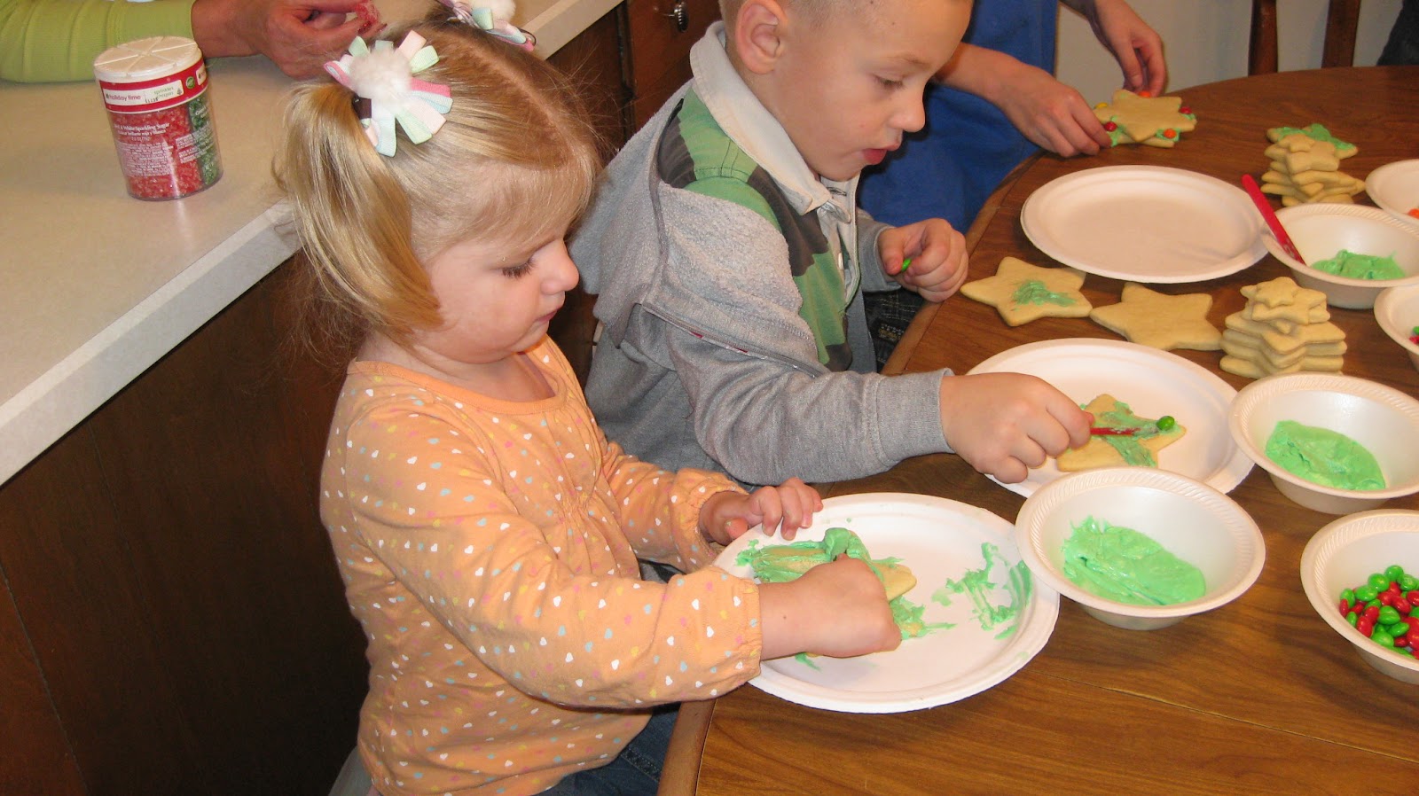 We always look forward to making our Christmas trees.   My Mom made a million star sugar cookies for the kids to make their trees.  Every year they get better at it.