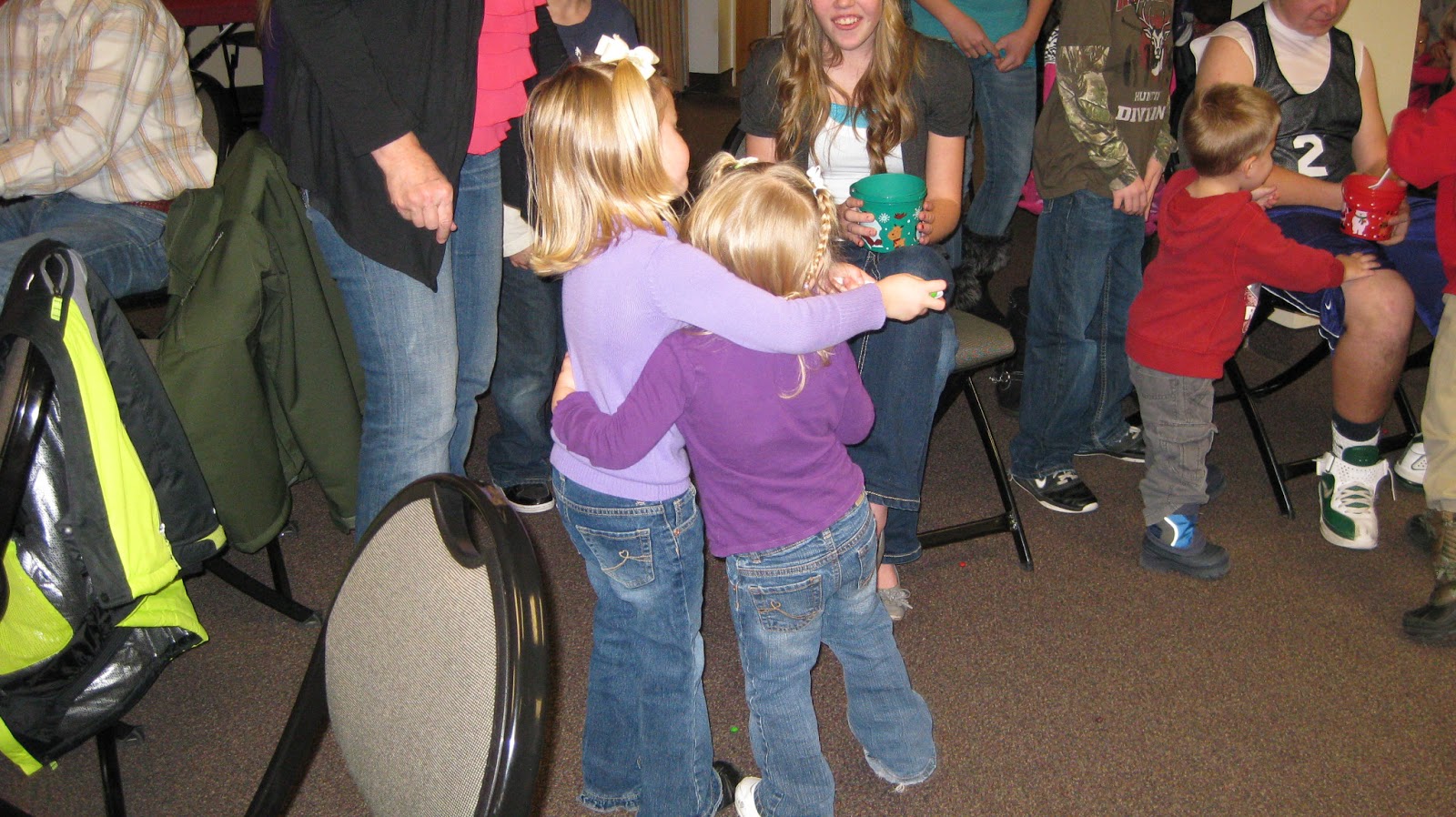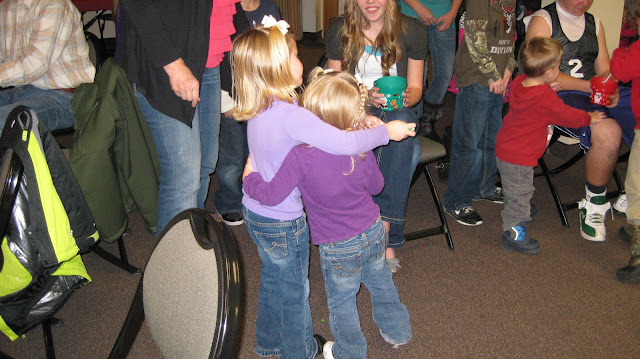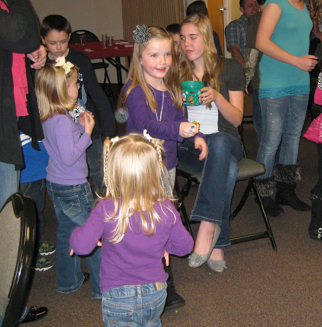 The kids played a games by carrying skittles with spoons across the floor.  My kids were the only ones picking the dropped ones up and eating them as they went.  Oh what the Smith's must think of us :)