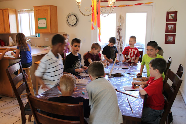 Friday night before his bday, we had a friend party. He wanted Harry Potter, and a million kids. I got him to narrow it down a bit, and only invited 12 I think. I have been a bit consumed with our basement painting, so I was a little behind on getting the party organized. Luckily 12 boys don't care what goes on as long as they can eat and run around.