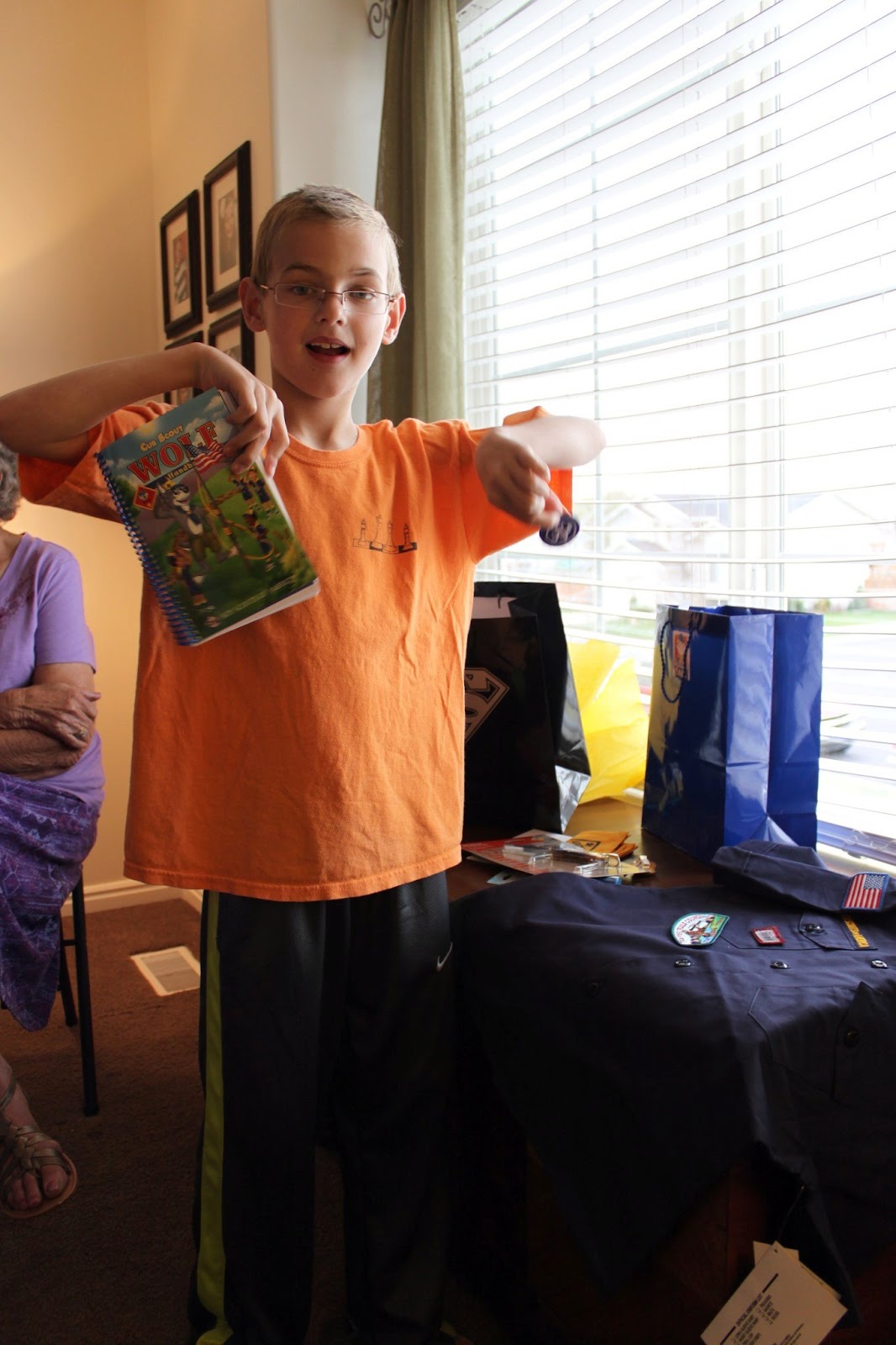 That night after all the guests had left he asked if we were going to have scripture study. I told him yes, and he said, "Wahooooo!" (not a normal reaction) He was the first one ready with his new scriptures.