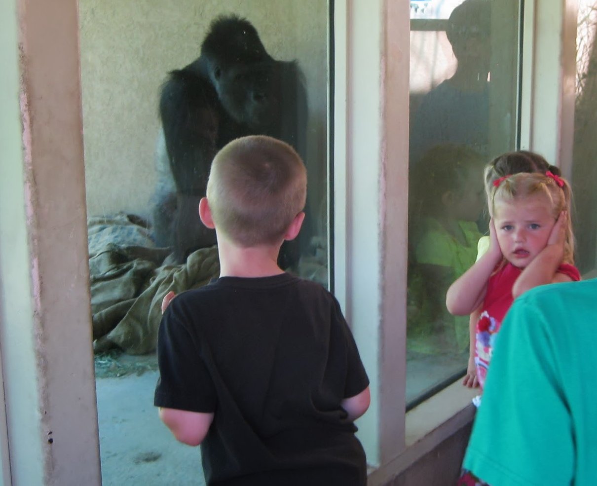 When Hailey gets nervous, she covers her ears, even though the gorilla didn't make a peep!