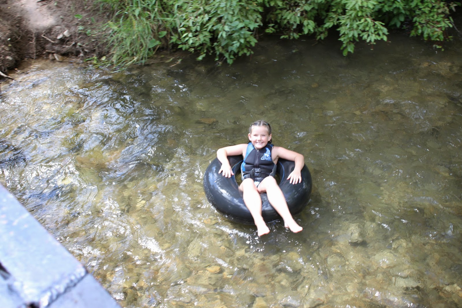 We all gathered on the bridge watching the kids float down the river