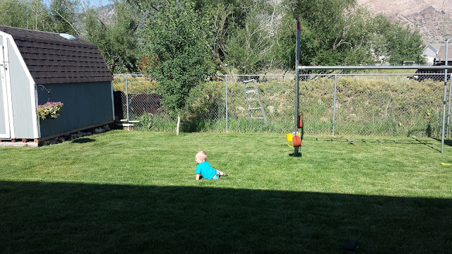 I was dying laughing one day when Ike found the neighbor's ball. He was screaming because he couldn't figure out how to get it, even though he was touching it.
