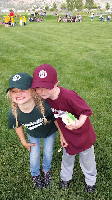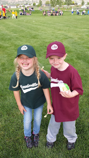 The four oldest kids started baseball. Hailey and Carly were on the same team together.