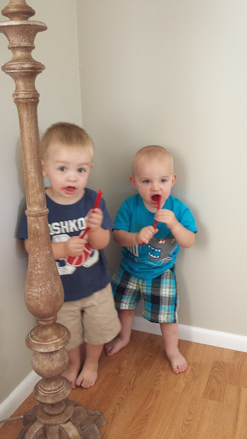 I couldn't quit laughing. Someone shut Ike's binki in the pantry and just left the clip part hanging out. He was so upset.