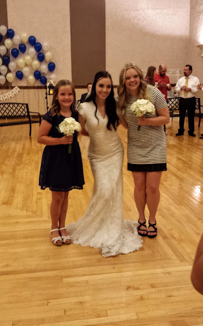 The girls got to catch a bouquet. Since Abigail is at least a foot taller than the other ones, she caught it. She treasures her bouquet and she made a special spot on her dresser for it.