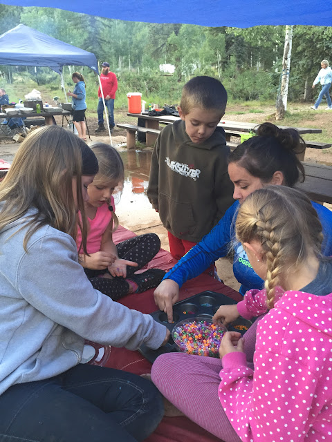 We had our annual family reunion this year just outside of Cedar City.  My Mom planned it down south so Brent and Shelley wouldn't have to drive so far to meet us.  We camped at the Duck Ceek Campground.  When the kids weren't running wild, we explored a cave, went for a hike, did crafts, played games, and ate.