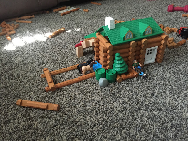 I found about 30 pictures of this log cabin on my phone. I'm guessing either Carly or Abigail built it.