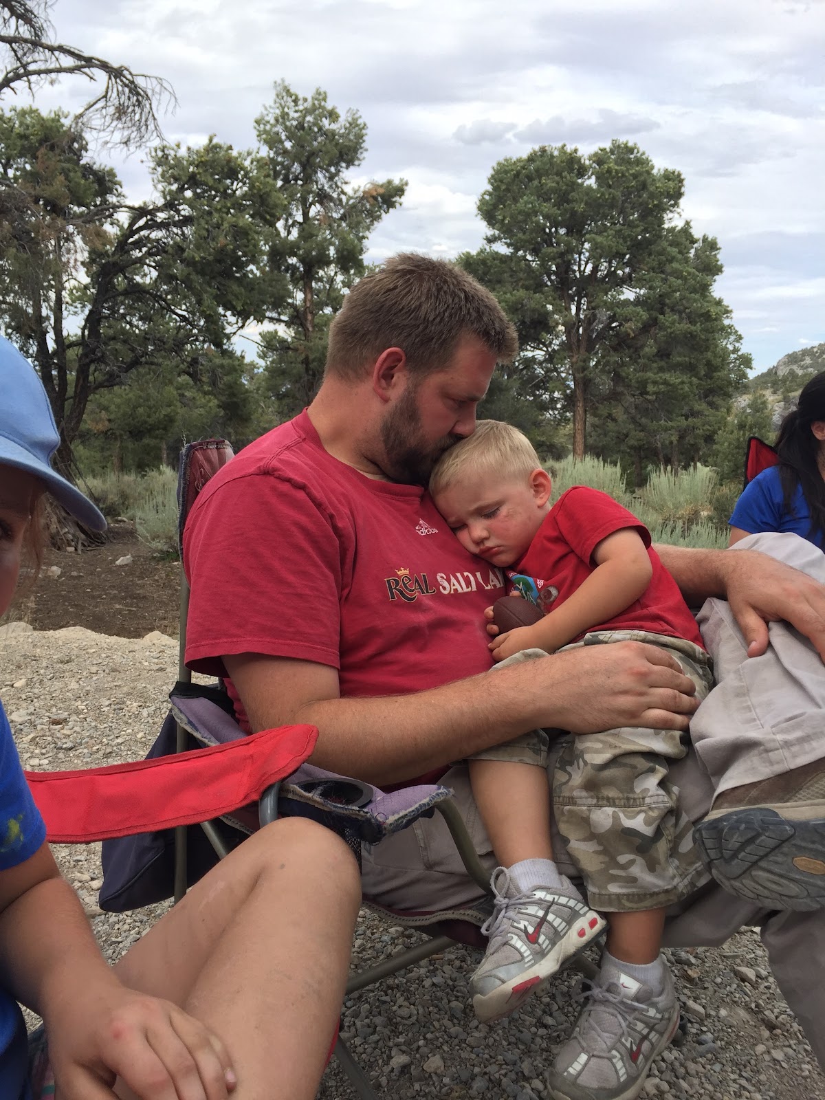 Brent and Shelley were over our family reunion this year. We stayed at a camp ground near the Lehman Caves in Nevada. We visited the caves one day, and explored our campsite the others. There was a little river the kids played in and they made their own little play area and hut. The Moms made hiking sticks with the kids. The Dads took the kids on a hike one of the afternoons. We bathed the little boys in some tiny coolers... they were so dirty, some of the kids got sick, and we got keys stuck in a tree. All of these memories made such a great trip.